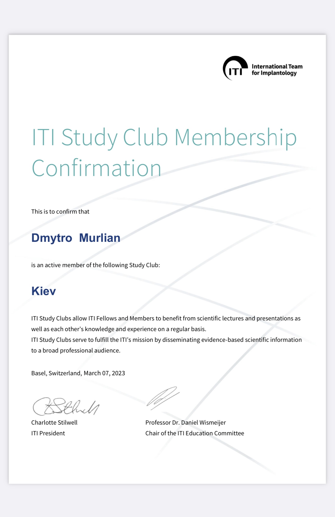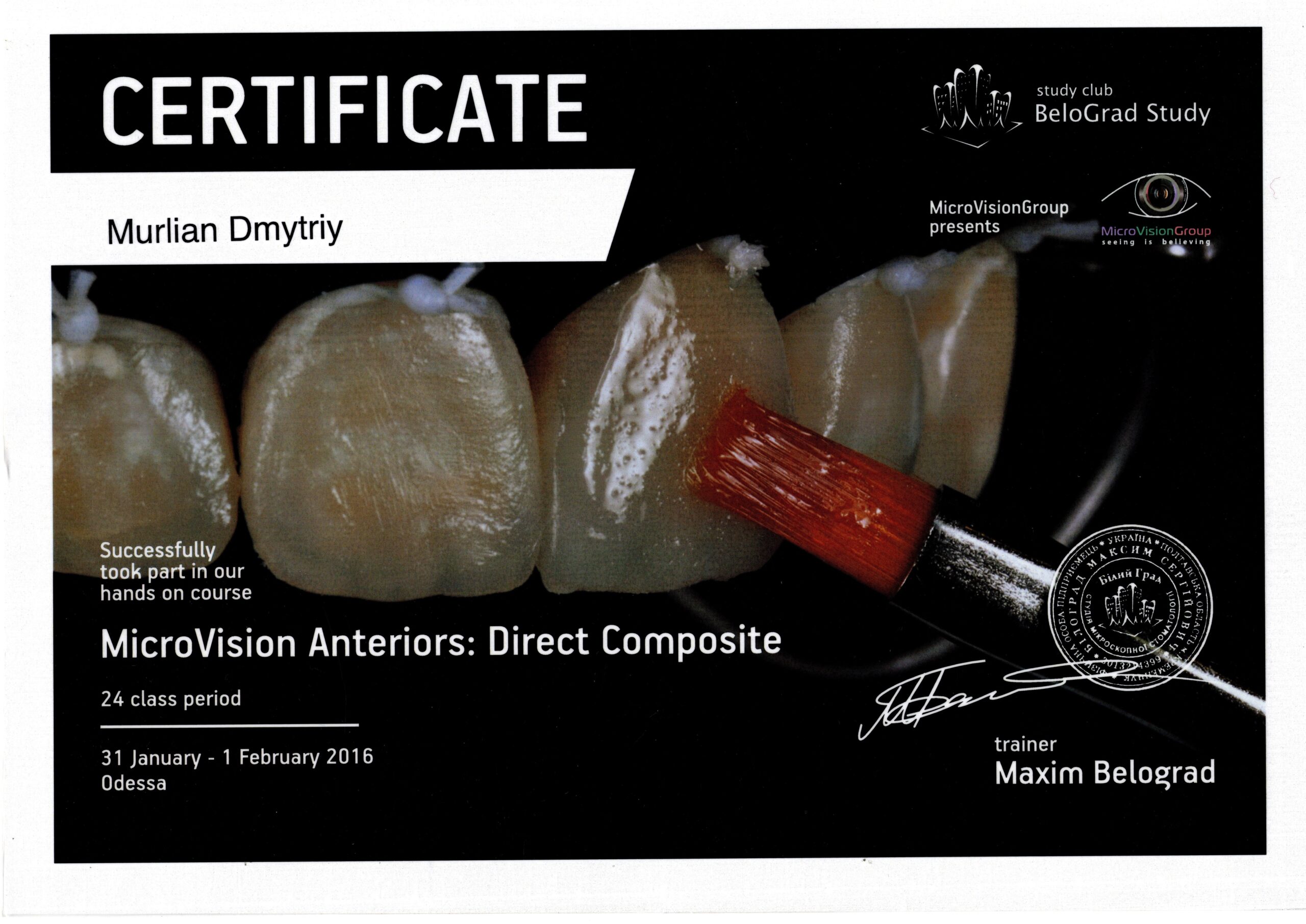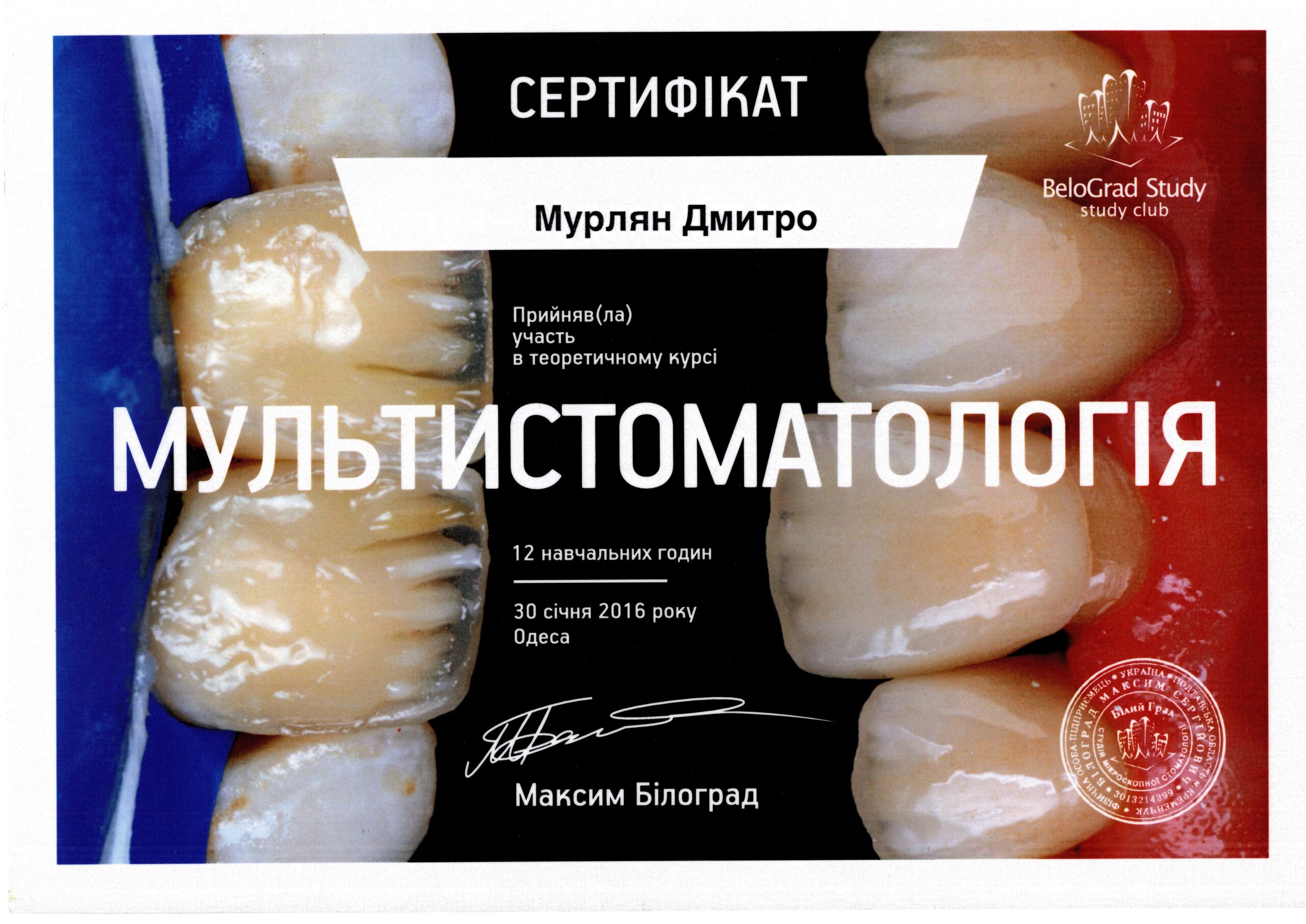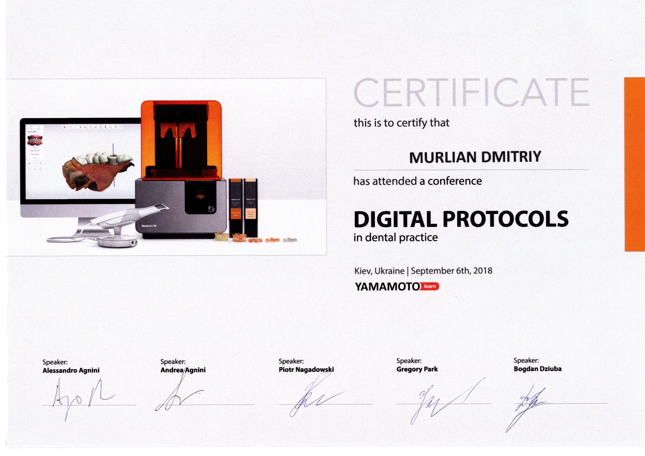 Невід’ємна частина роботи стоматолога – це постійне навчання. Відвідую конгреси і семінари в Україні та в Європі, навчався і продовжую навчання у кращих іноземних фахівців. В даний час проводжу авторський курс для колег стоматологів (Застосування цифрових технологій в тотальному протезування пацієнтів).