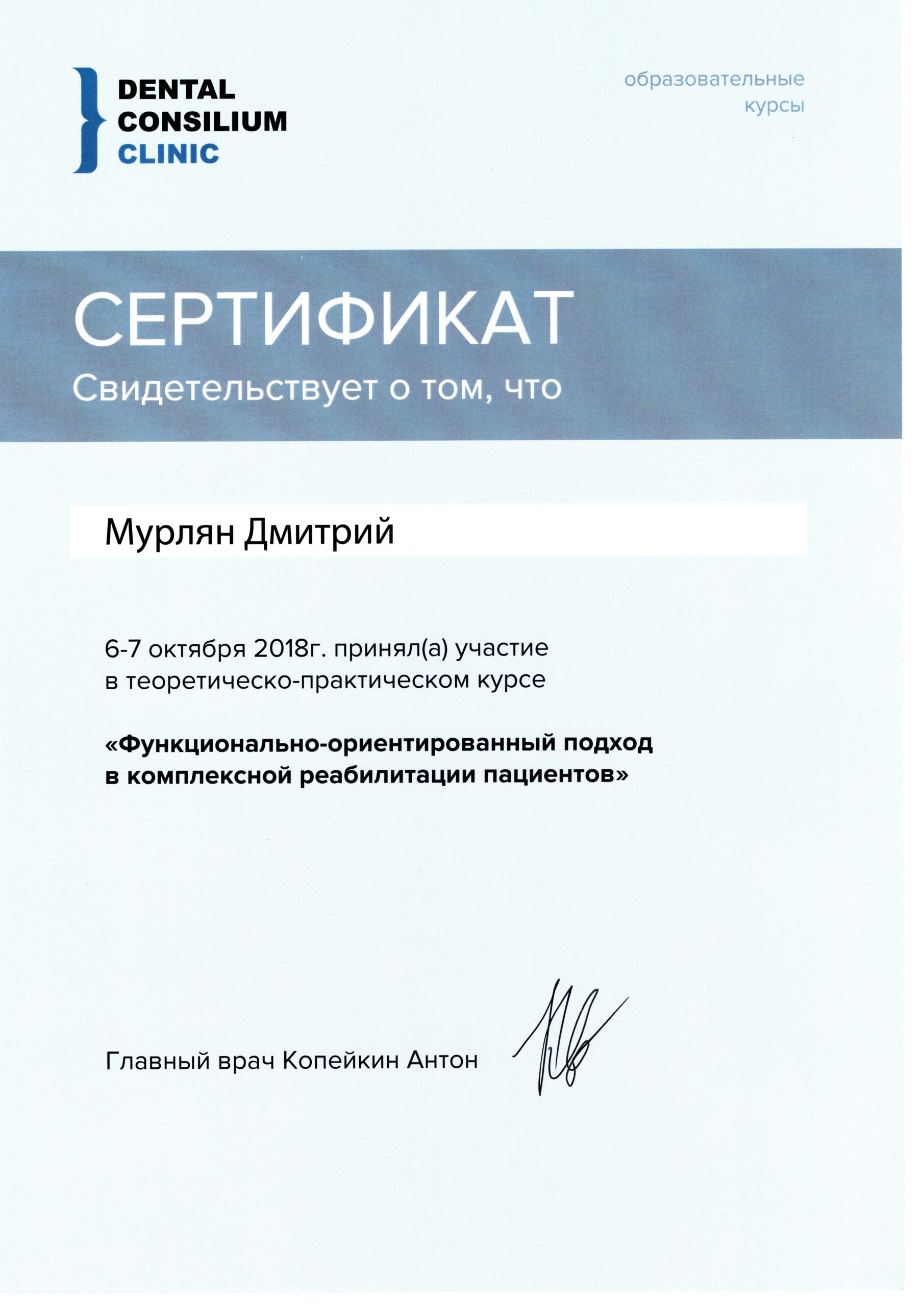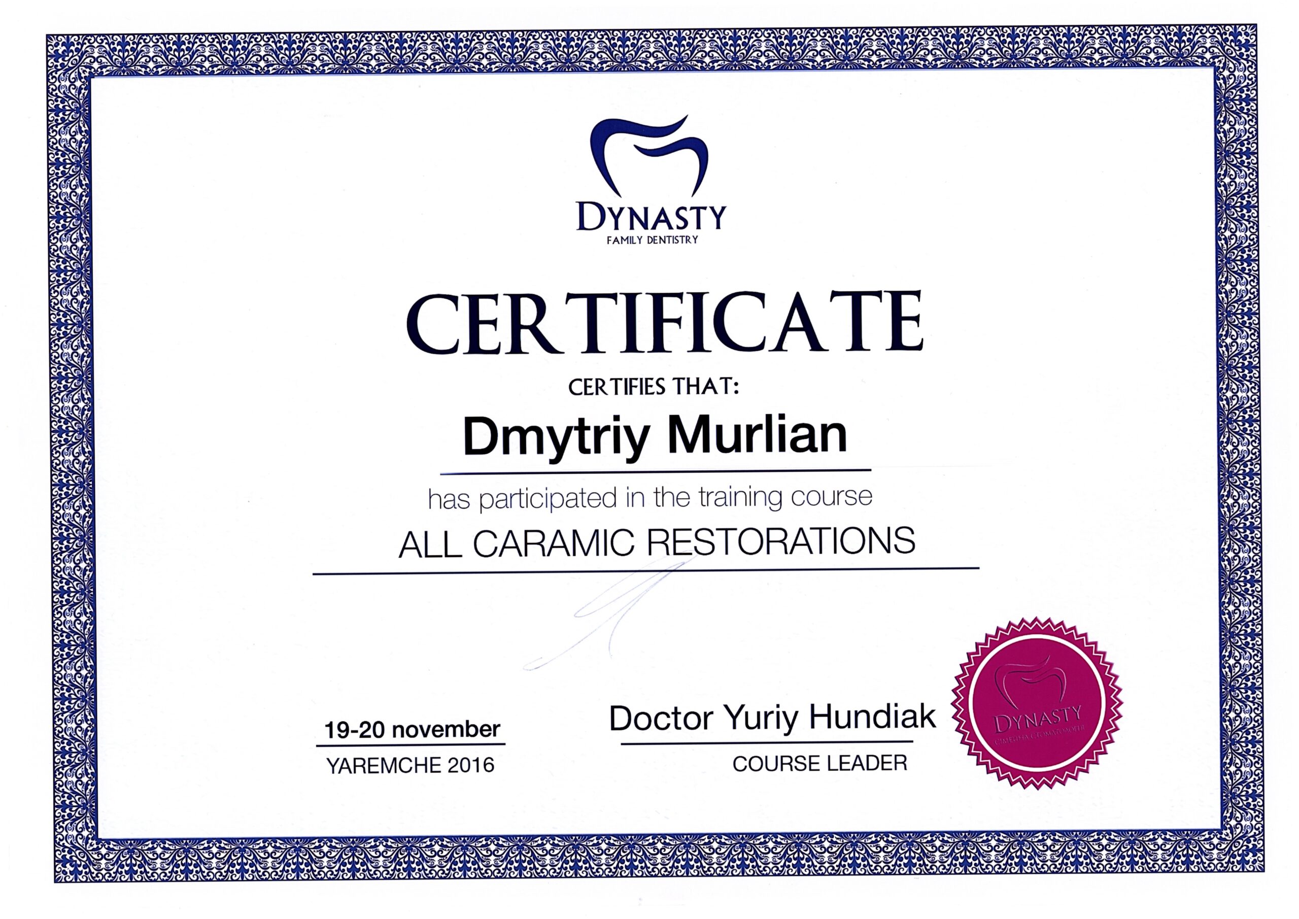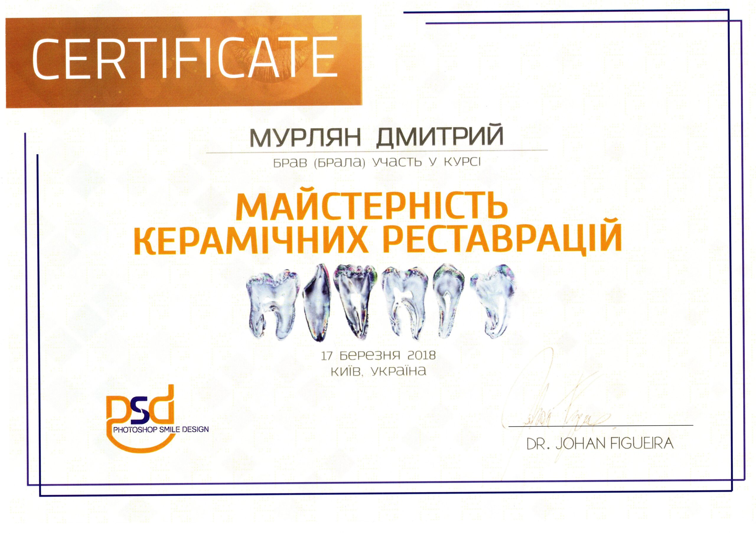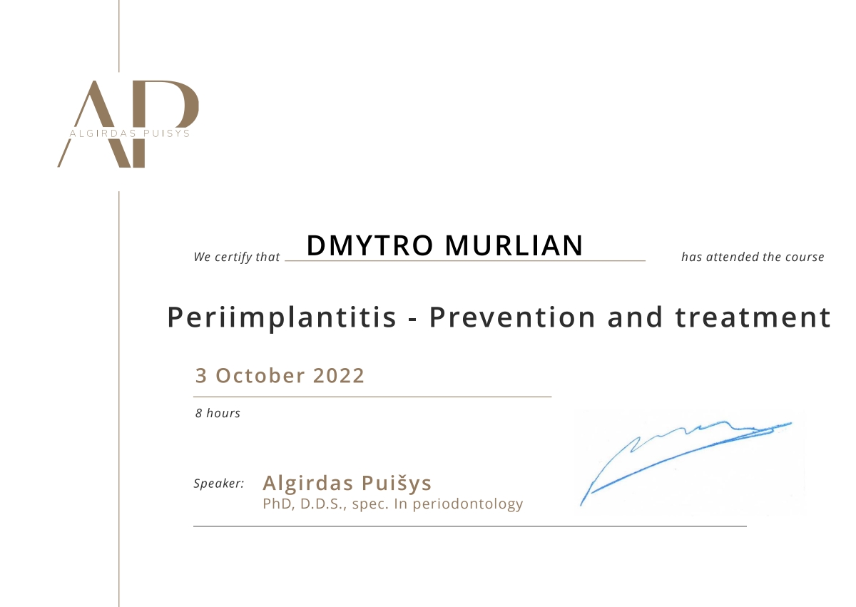 Добрий день! Мене звати Мурлян Дмитро. Я – лікар стоматолог-ортопед, спеціалізуюся на естетичному протезуванні та цифровій імплантації.