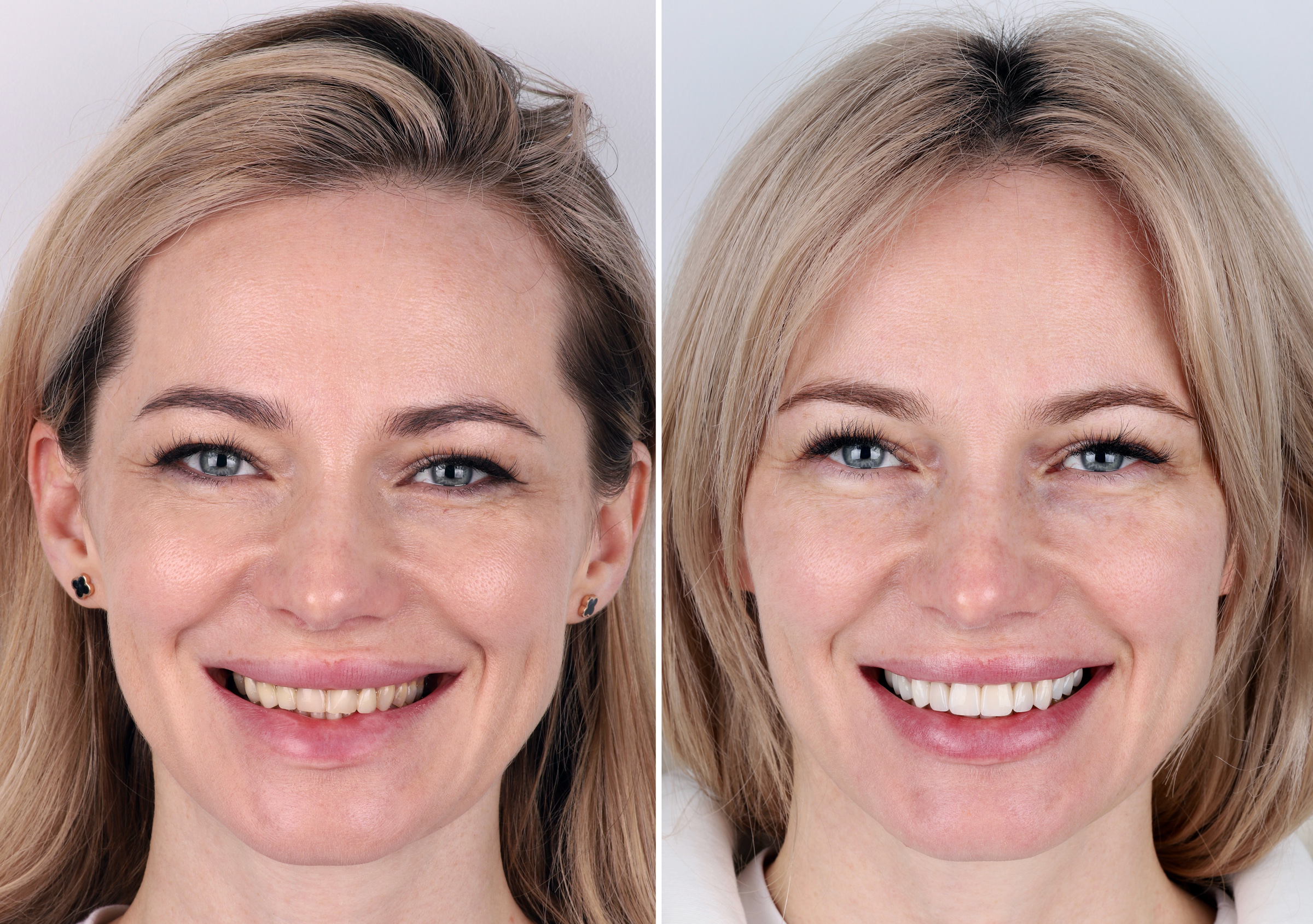 Лесі порекомендував звернутись до мене її лікуючий стоматолог з приводу корекції естетики усмішки. Після планування та обговорення всіх деталей ми встановили імплантант в естетичній зоні. Згодом змоделювали індивідуальну форму та обрали пропорції нових керамічних вінірів.