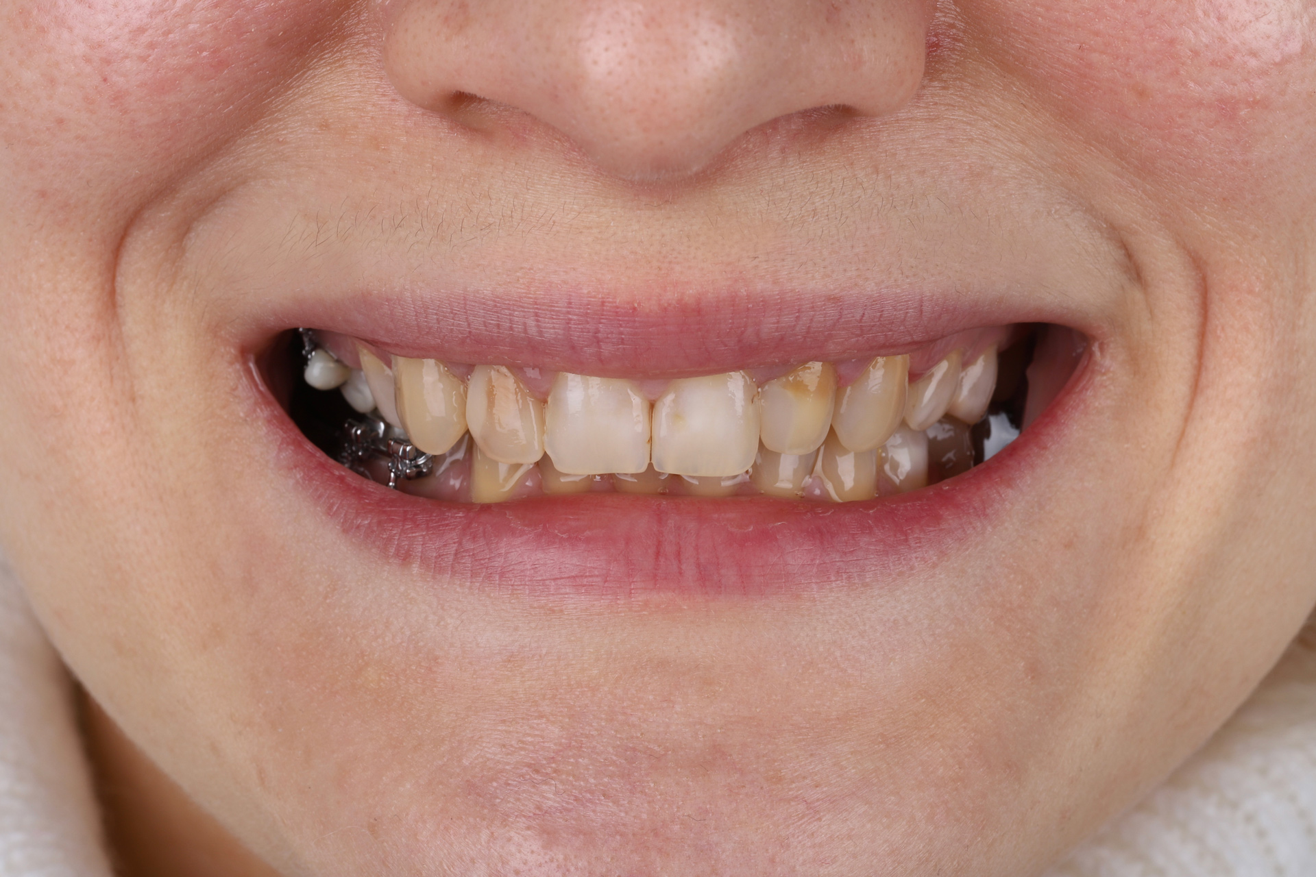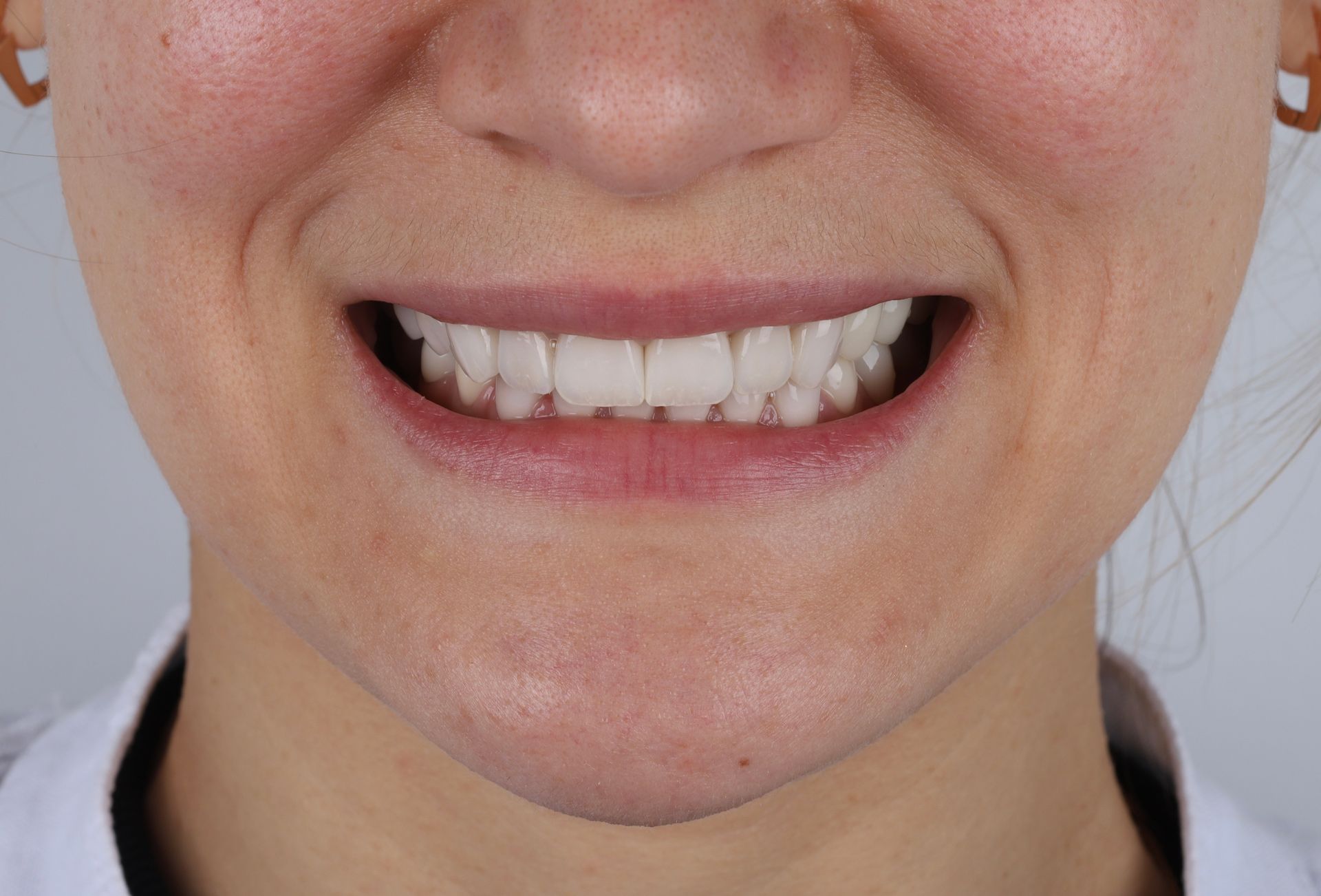 Звернулась до мене після ортодонтичного лікування в іншій клініці, так як не знайшла спільної мови з ортопедом. Знайомі Олі лікувались у мене, тому вона не вагаючись погодилась на підготовлений мною план лікування: